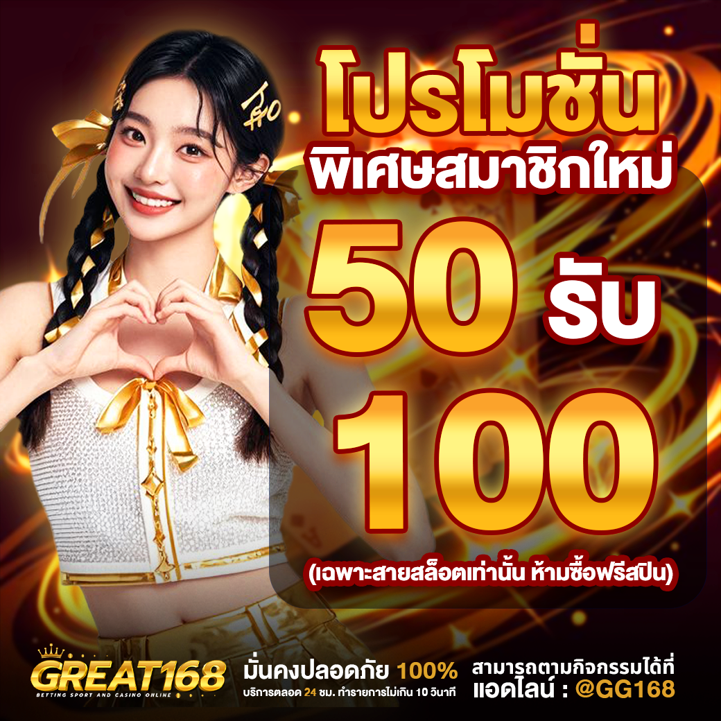 ฝาก 50 รับ 100 ทำเทิร์น 5 เท่า ถอนได้สูงสุด 500 เล่นได้เฉพราะสล็อตห้ามซื้อฟรีสปิน โปรสำหรับสมาชิกใหม่เท่านั้น