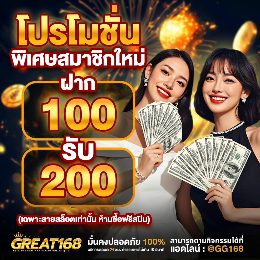ฝาก 100 รับ 200 ทำเทิร์น 5 เท่า ถถอนได้สูงสุด 1000 เล่นได้เฉพราะสล็อตห้ามซื้อฟรีสปิน โปรสำหรับสมาชิกใหม่เท่านั้น
